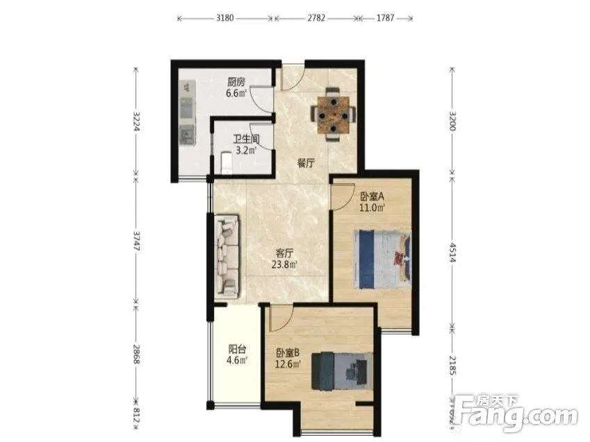 此房是正商东方港湾经典的两房户型,中间楼层采光好,户型得房,不浪费空间