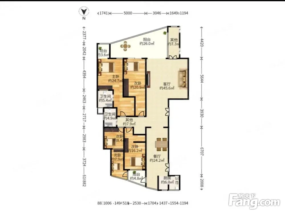 1:小区总共有3栋,A栋为别墅,高,低区,B栋以小户型66平,78平为主的两房,三房,C栋为大平面205~220平的,小区环境好,花园,泳池、喷泉,等配套完善。 2:房子现在格局是大4房的,两个阳台共80平米看山看海,南北通透,两个电梯是专梯入户的,还有两个侧门可通往两条走廊通道,有公用电梯。