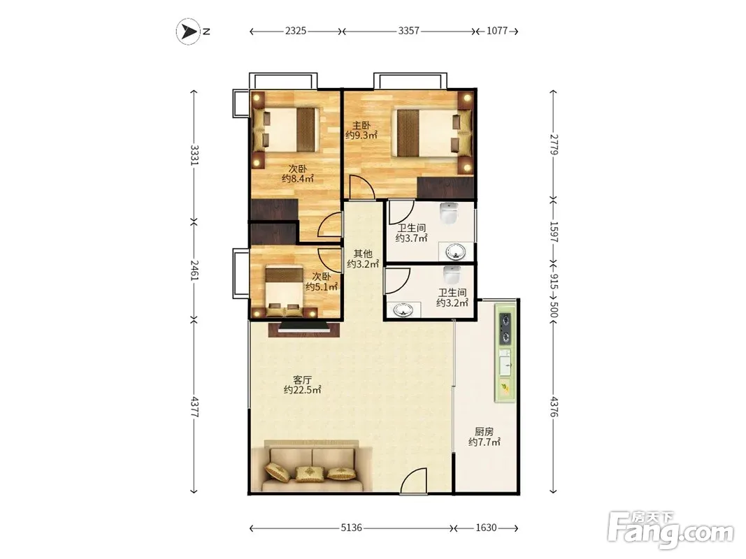 3室1厅2卫