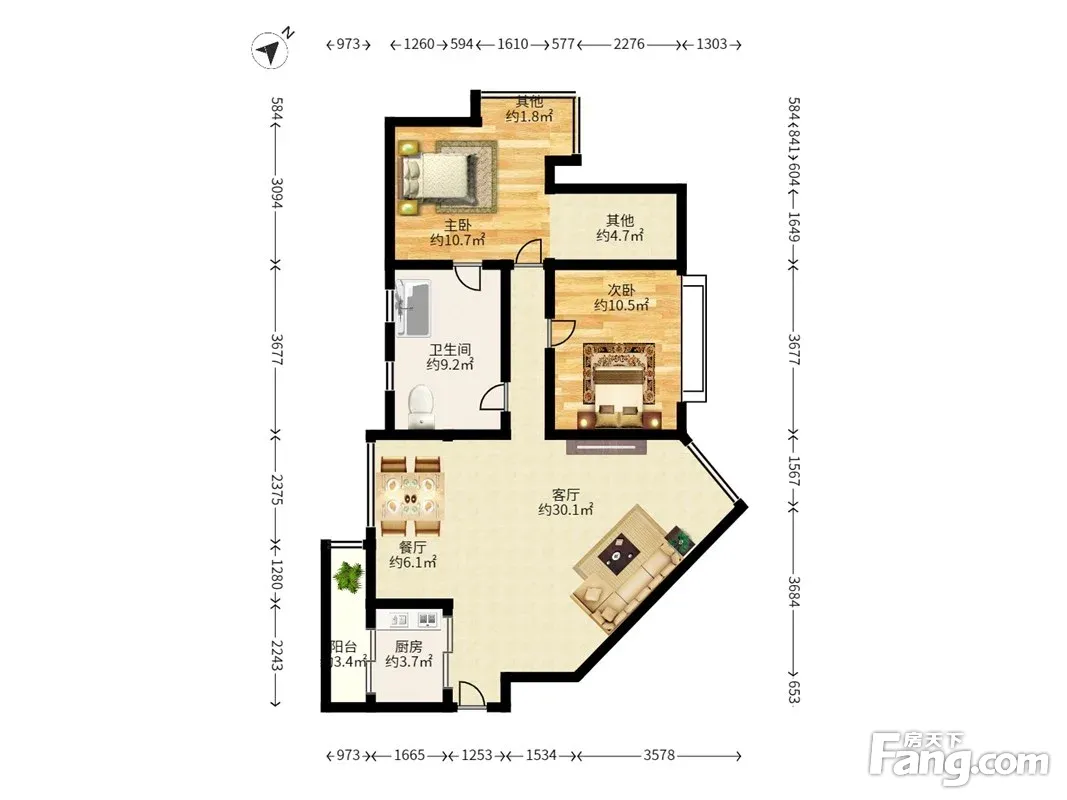 户型齐全,主打明卫,客厅朝南,主卧朝南三居