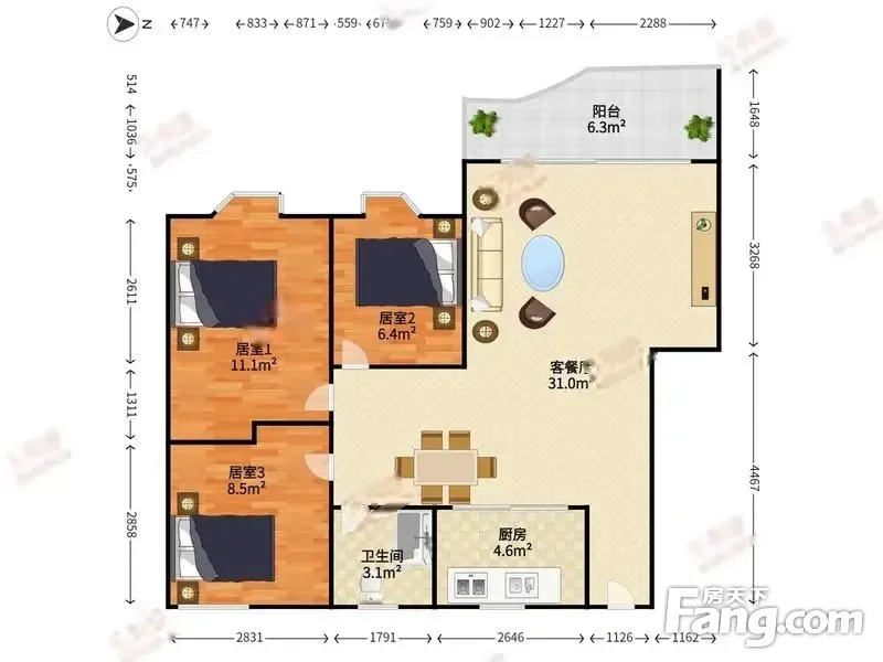 3室2厅1卫