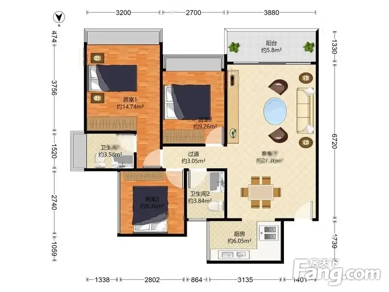 天健天骄正规的3房户型,通风采光好