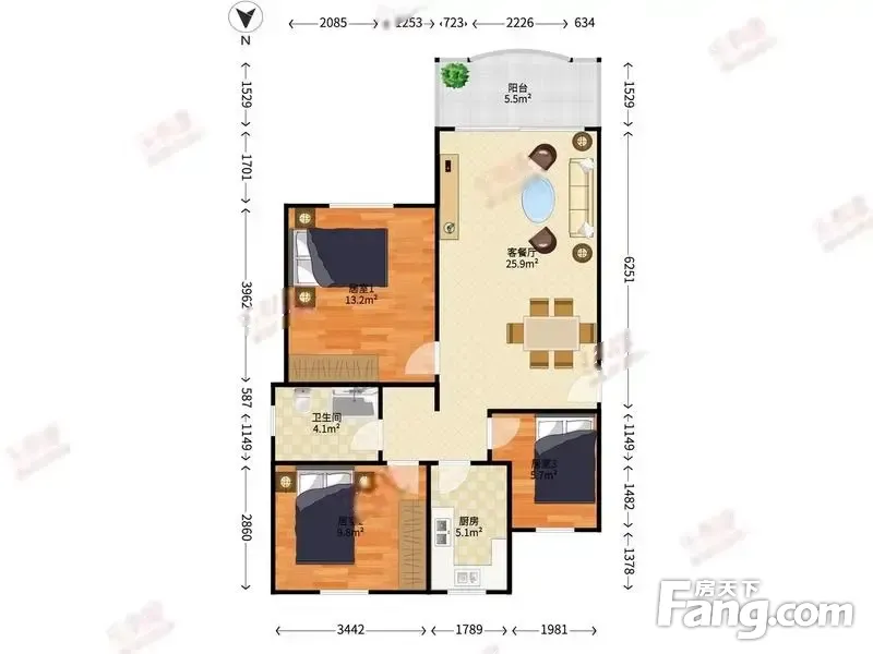 3室2厅1卫