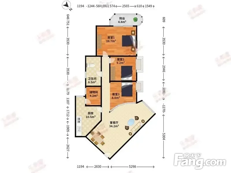 户型实用,格局明亮,通风采光好,实用面积大