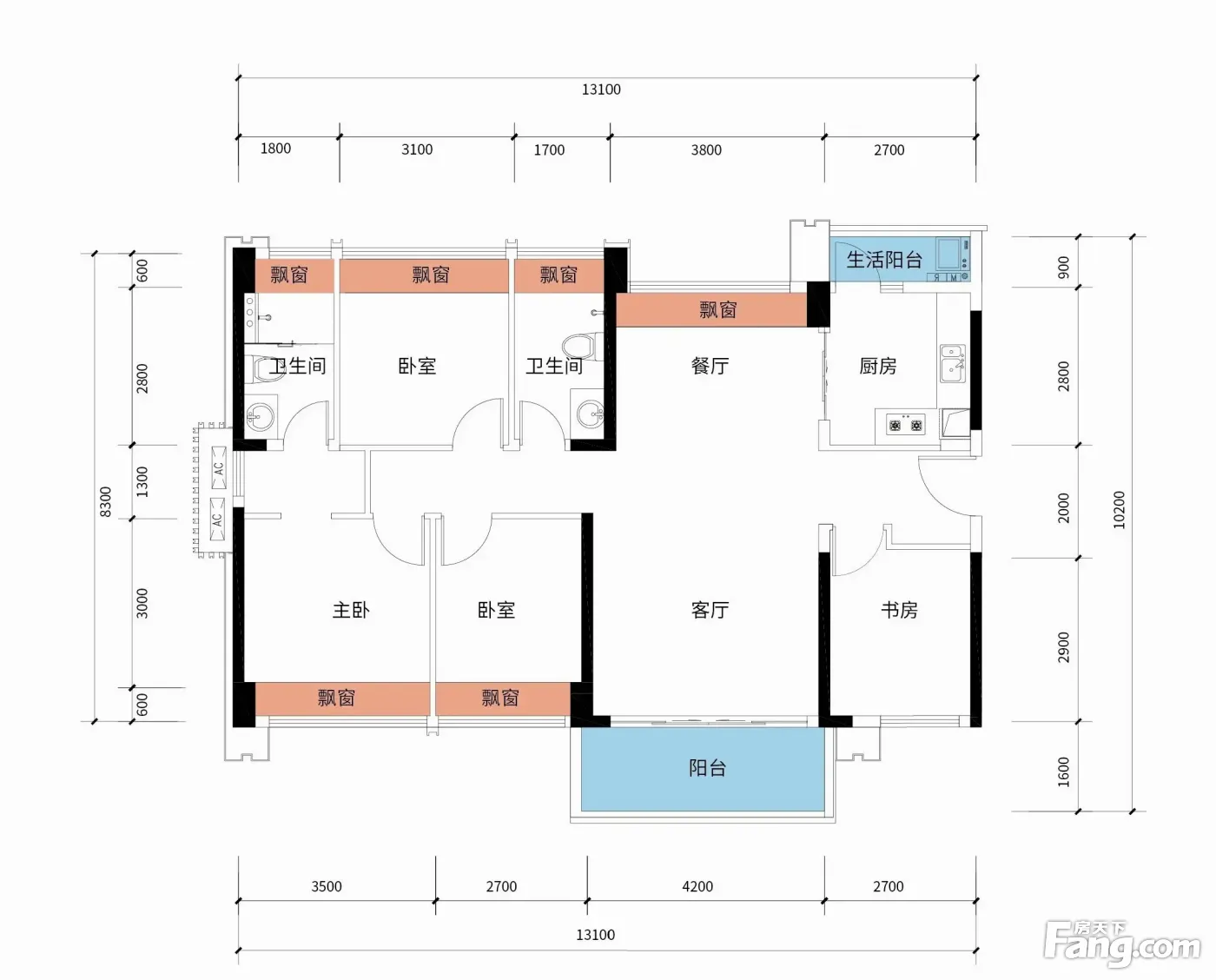 户型齐全,主打户型方正,动静分离,观景飘窗,餐客分离,双阳台四居