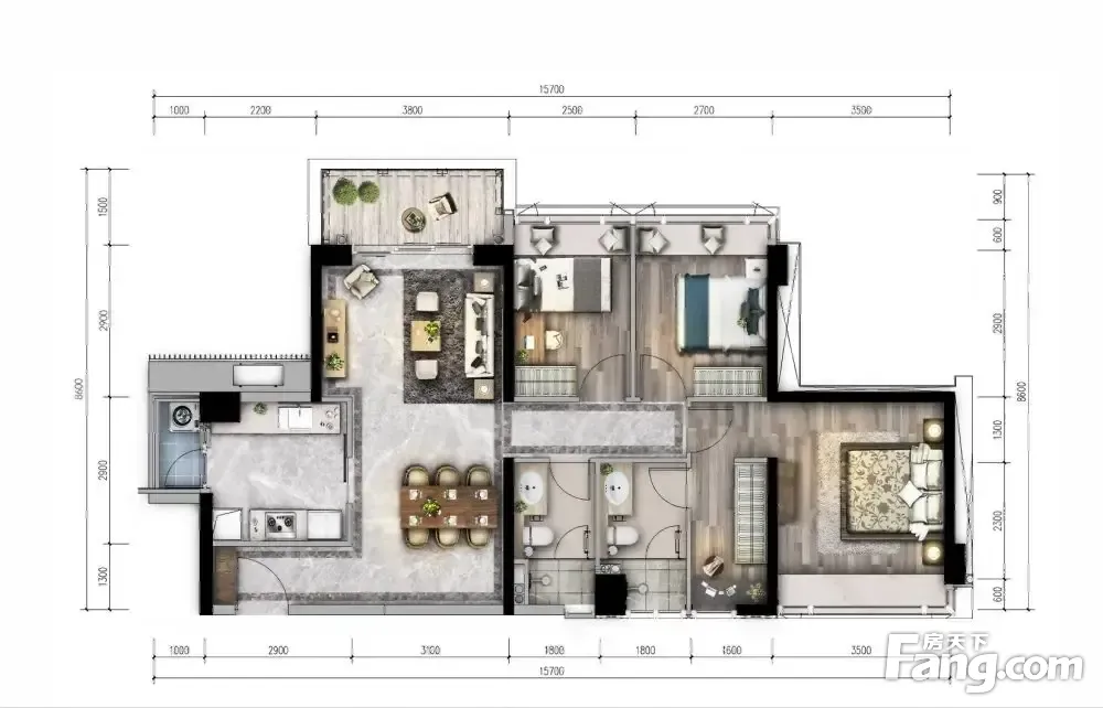 房屋拥有相对宽松的尺寸,布局通透,动静分离,设计豪华