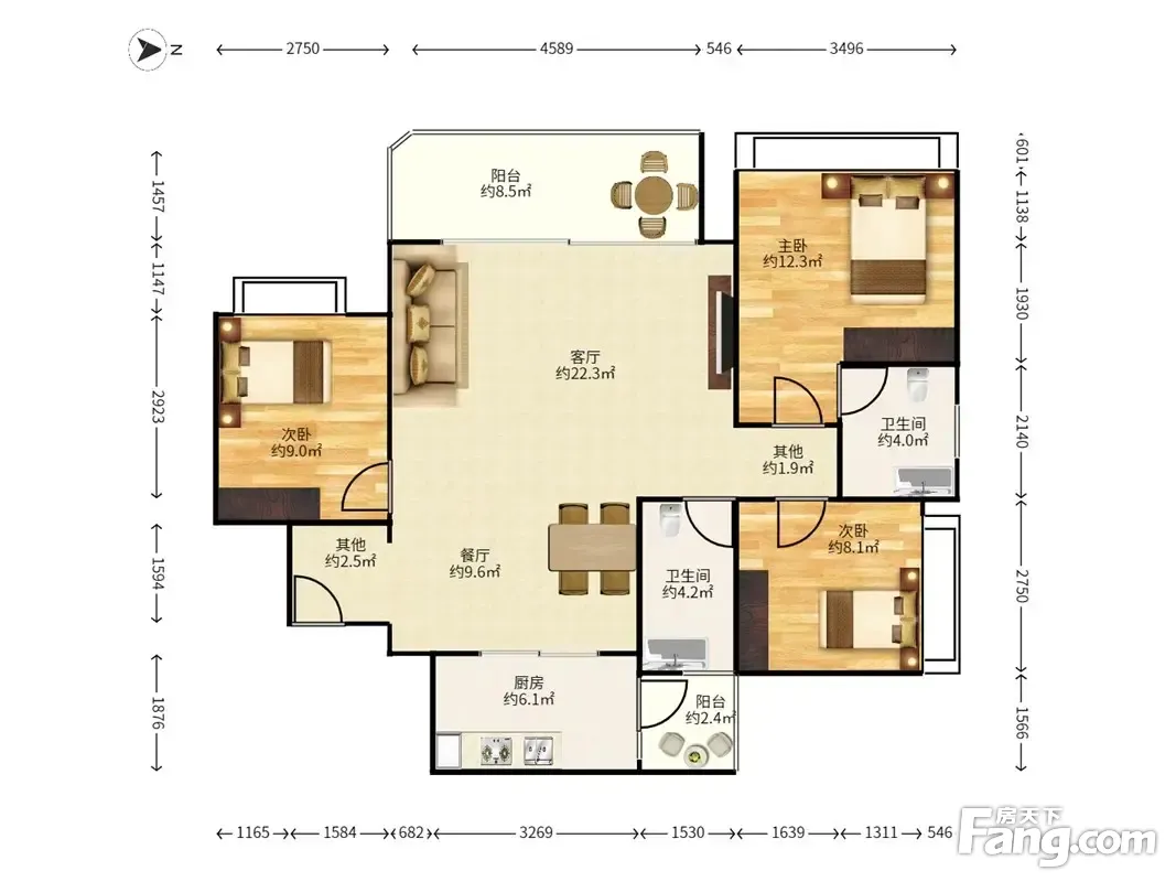 户型齐全,主打南北通透,全明格局,户型方正,主卧带卫,双阳台三居