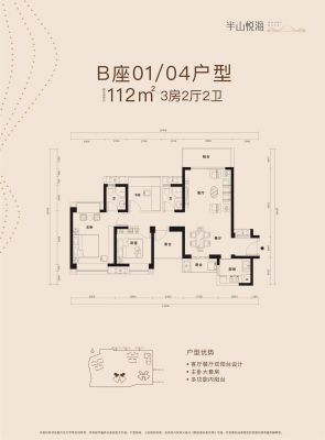 刚需家庭改善置换楼盘,面积段选择多, 一手现房。 半山悦海花园,地铁口50米。 【户型】3房2厅2卫, 89平南向, 4梯6户,车位1:1.2, 层高3米。