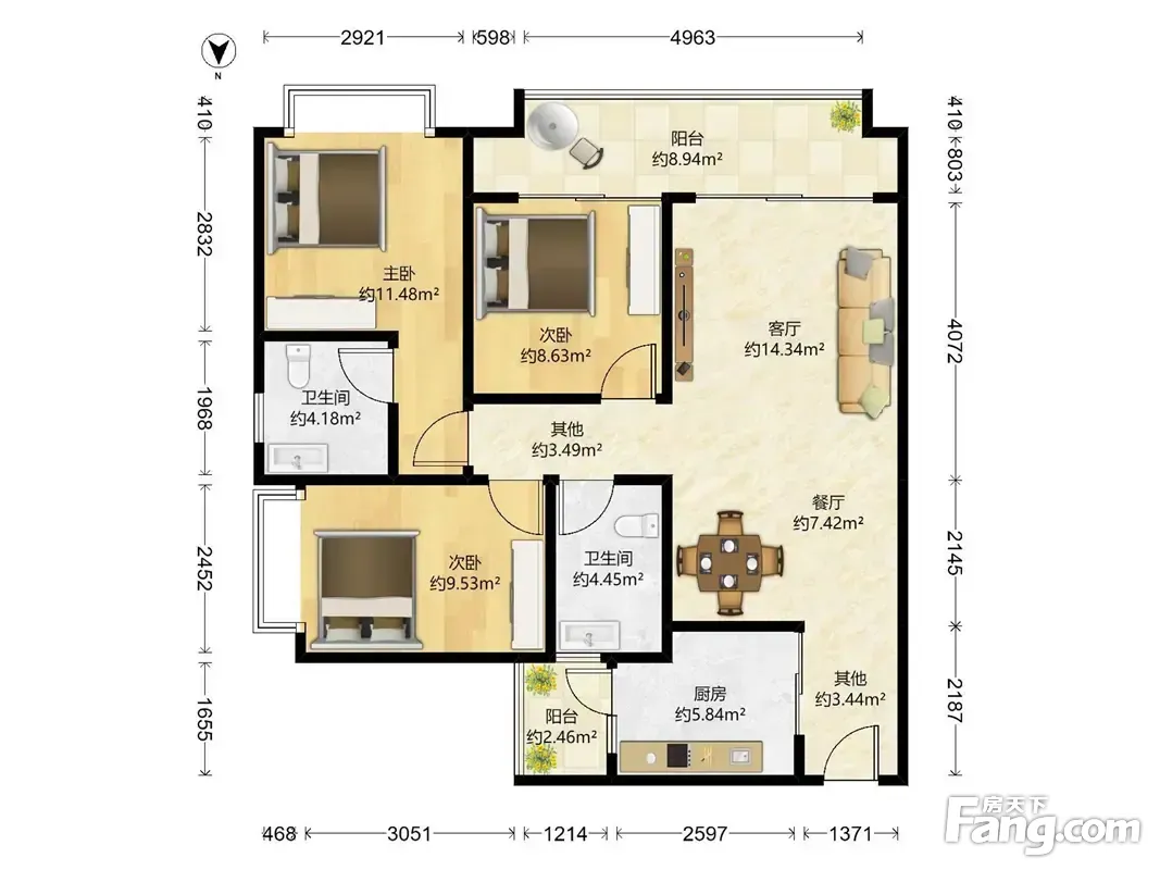 户型齐全,主打南北通透,全明格局三居