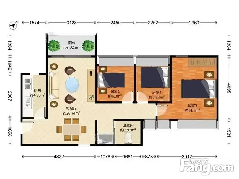 户型齐全,主打南北通透,全明格局三居