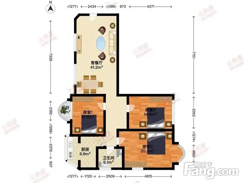天王方晶推荐:安高尔夫花园一期 3房2厅2卫 136.01㎡