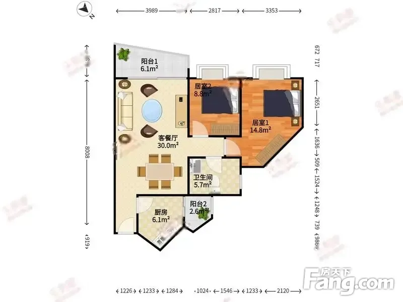 户型齐全,主打户型方正,明卫,双阳台二居