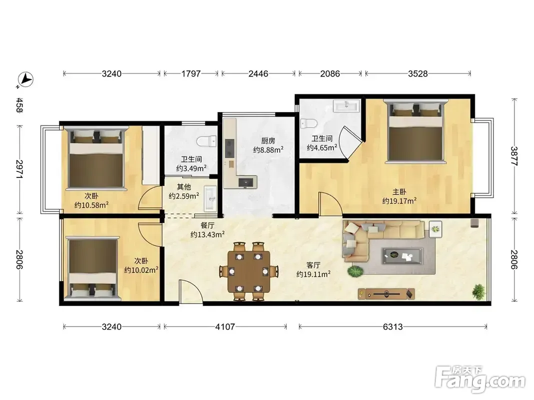 户型齐全,主打南北通透,全明格局,户型方正三居