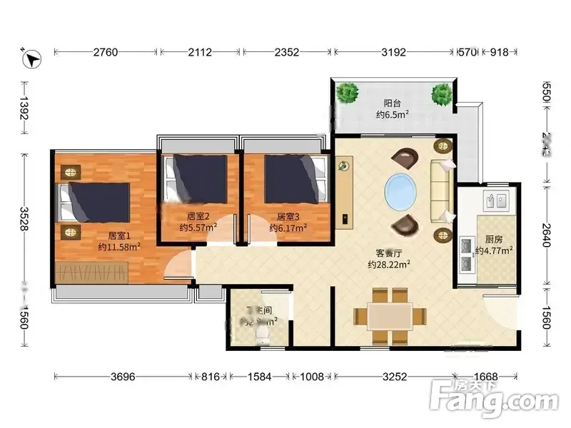 户型齐全,主打南北通透,卧室朝南,开放厨房,厨卫不对门三居