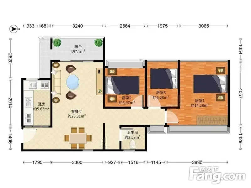 户型齐全,主打南北通透,卧室朝南,开放厨房,厨卫不对门三居