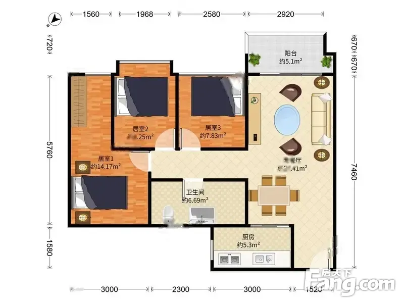 3室2厅1卫