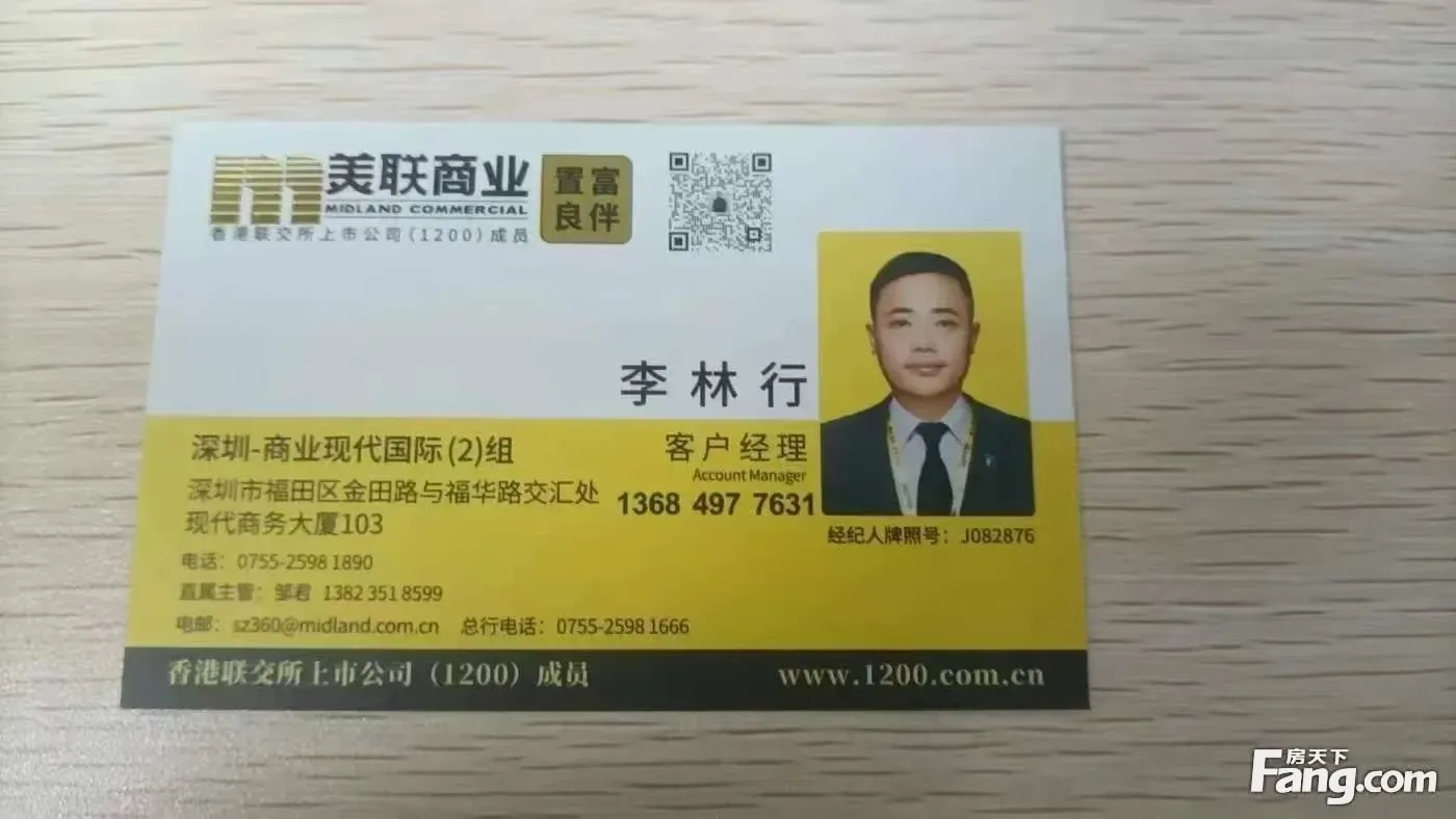 本人从事以中心区现代国际大厦一楼的美,联物业(上市公司)办公 专业代理福田中心区及福田,南山写字楼租售代理业务 本公司盘源多多,本人从事商业地产十多年!您一个电话,帮您找到优质的物业!节省您宝贵的时间