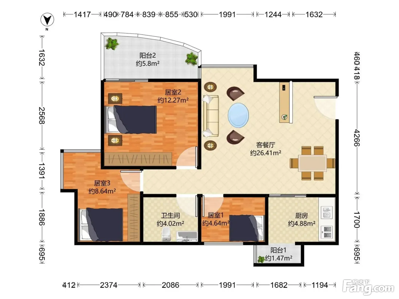 3室2厅1卫