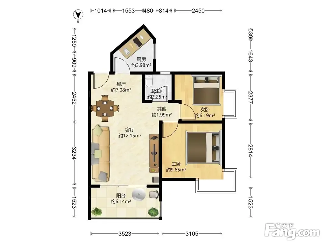 户型齐全,主打客厅朝南二居