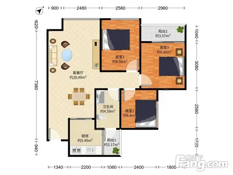 户型齐全,主打主卧带卫,厨卫不对门三居
