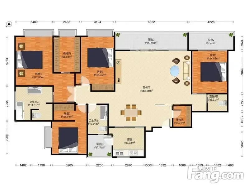 房屋拥有相对宽松的尺寸,布局通透,动静分离,设计豪华