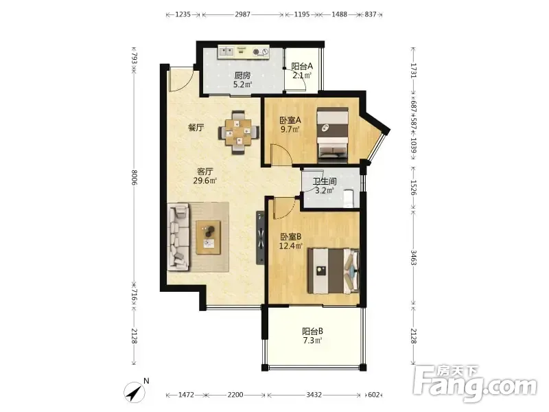 碧海富通城二期 2室2厅 75.65平