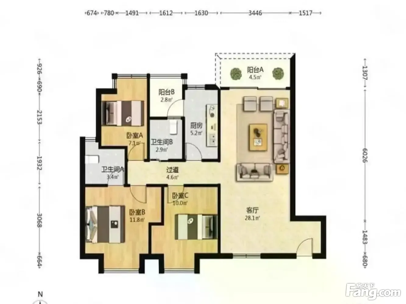 (400出)带双阳台好户型3房2卫,南北通透风采光好