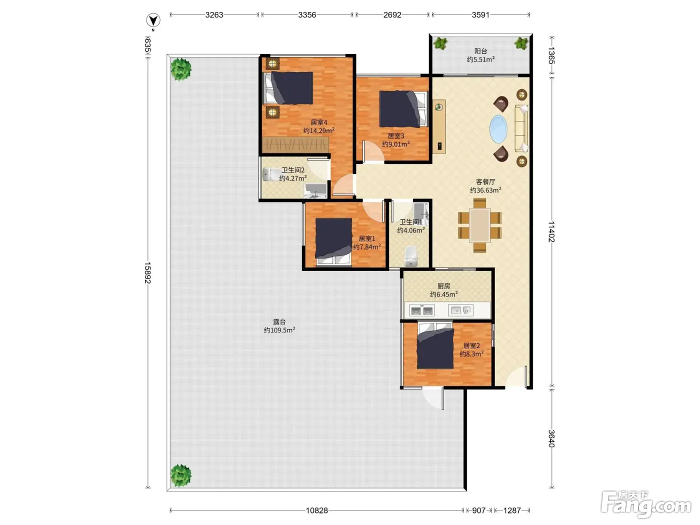 翰林城南向四房,100平露台,仅此一套