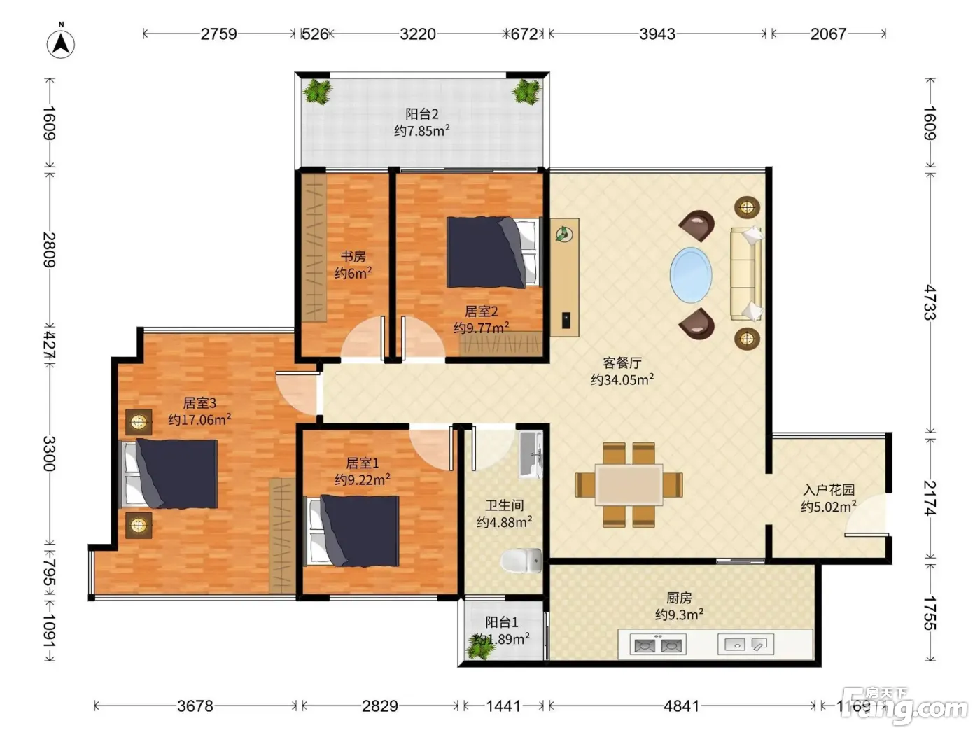 阅山华府 4房2厅1卫 88.43㎡
