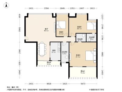 奥林华府 3房2厅1卫 76㎡