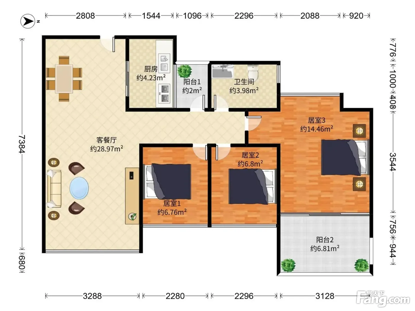 户型齐全,主打户型方正,明厨,明卫,双阳台三居