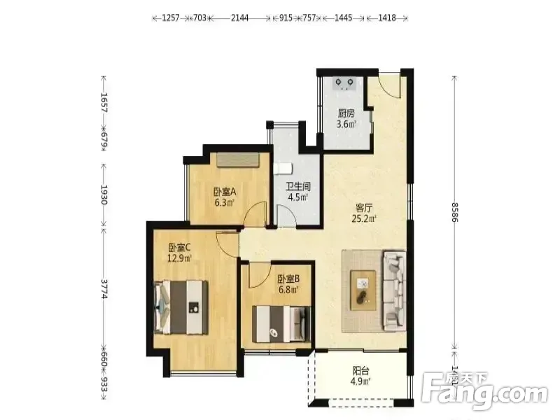 坪山锦龙大道精装两房 满五 南向中层户型