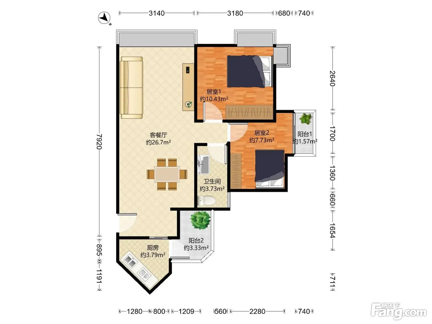 2室2厅1卫