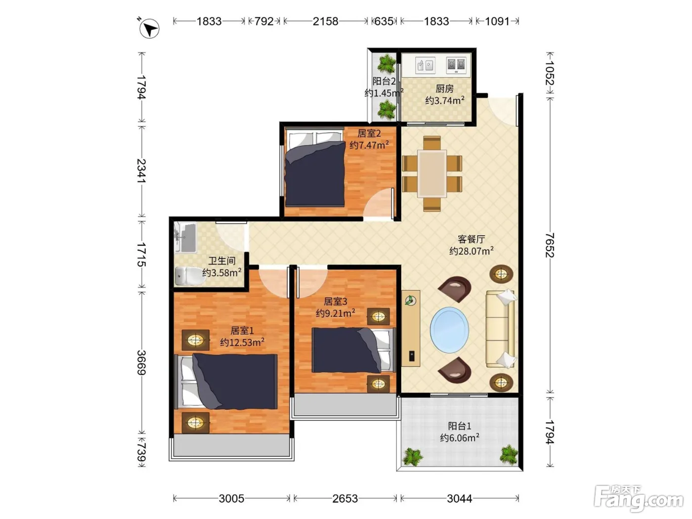 3室2厅1卫