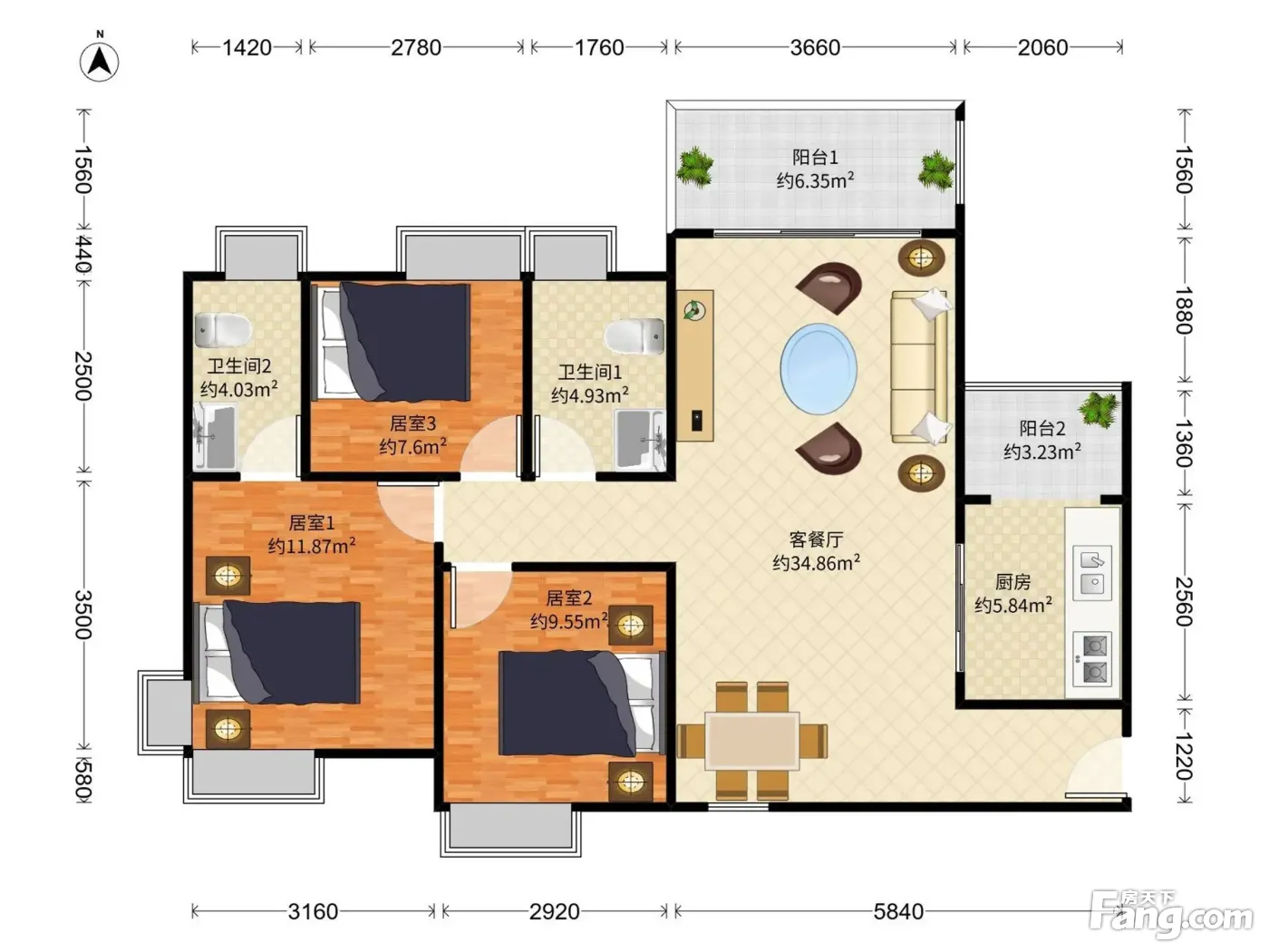 户型齐全,主打明卫三居
