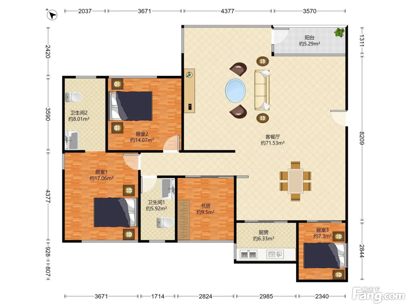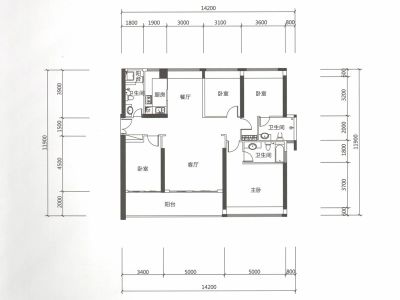 户型齐全,主打主卧带卫,厨卫不对门,户型方正,双阳台三居