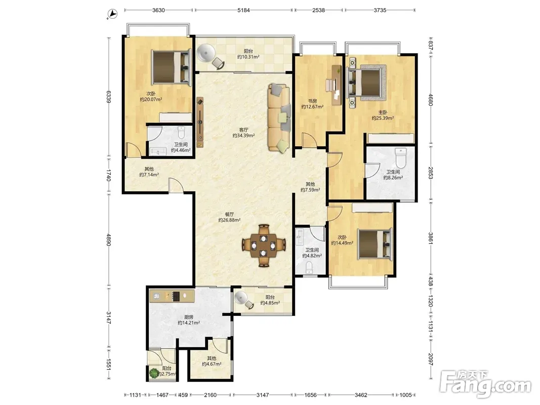 户型齐全,主打明卫,明厨四居