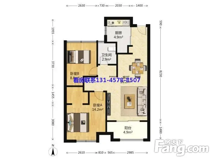 户型齐全,主打户型方正,客厅朝南二居