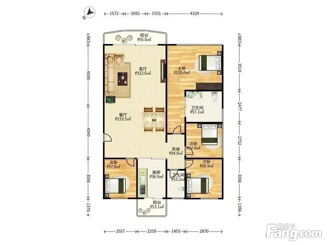 户型齐全,主打户型方正,独立衣帽间,明厨,明卫,双阳台三居