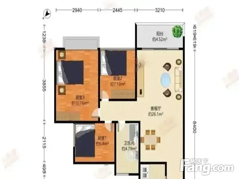 3室2厅1卫