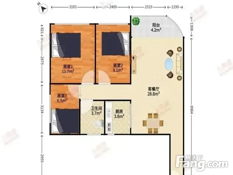 3室2厅1卫