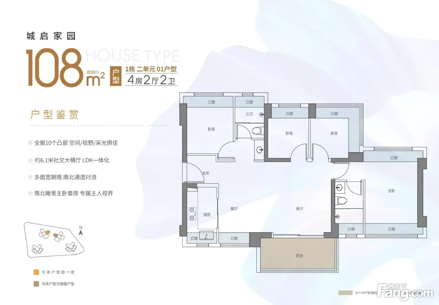 79㎡三房两厅两卫,经典竖厅格局,LDKB一体化。三开间朝南,采光充足,主卧与一次卧270°飘窗,空间感十足 。 89㎡竖厅三房两厅两卫,客厅3.4米开间,S墙预留冰箱位。主卧带270°飘窗,5.75米大阳台连通客厅与卧室,采光观景超棒。 89㎡横厅三房两厅两卫,客餐厅6.12米大开间,四开间朝南。主卧双飘窗南北通透,L型厨房,空间敞亮又实用 。 108㎡四房两厅两卫,横厅南北通透,进门独立玄关。五开间朝南,全屋10个凸窗,主卧双飘窗,满足大家庭居住 。