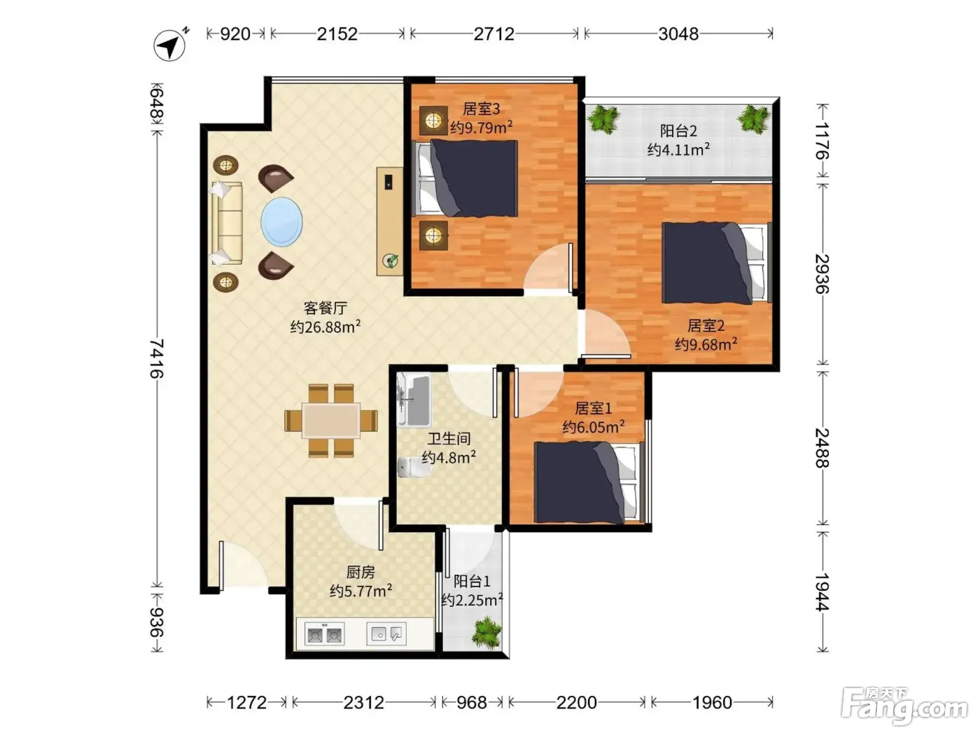 3室2厅1卫