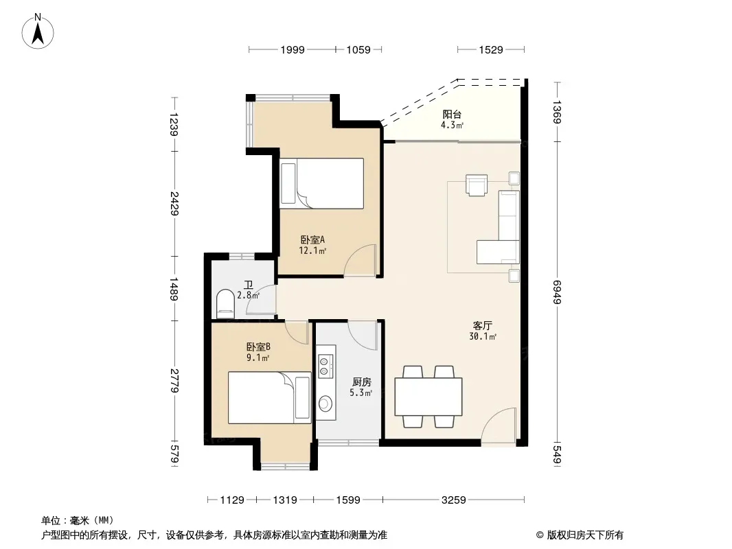 户型齐全,主打户型方正,明卫,双阳台,主卧朝南二居