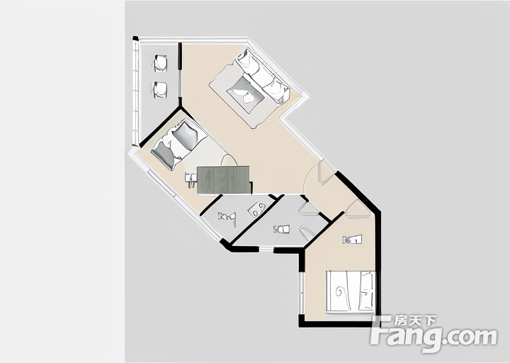户型齐全,主打客厅朝南二居