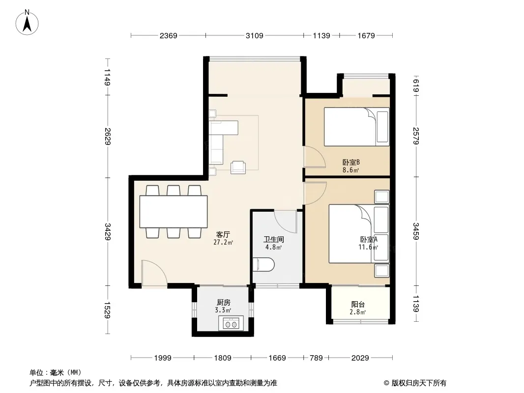 户型齐全,主打户型方正,明厨,明卫,客厅朝南二居