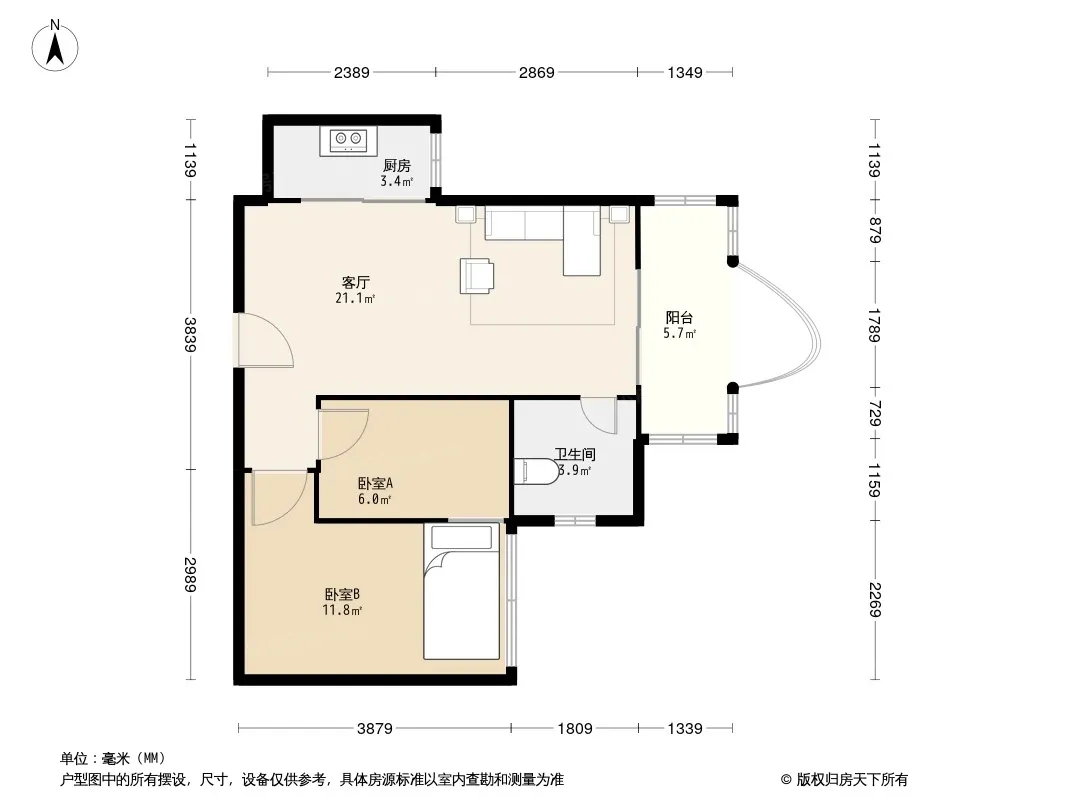 户型齐全,主打户型方正,客厅朝南,双阳台二居