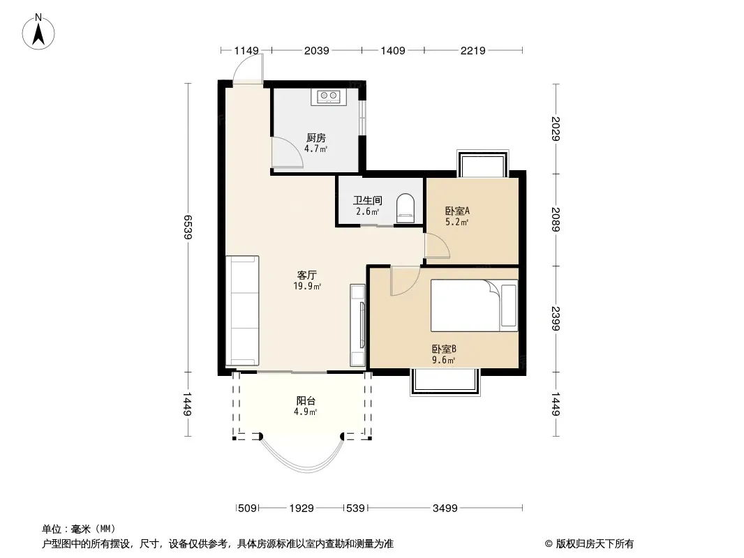 户型齐全,主打户型方正,客厅朝南,双阳台二居