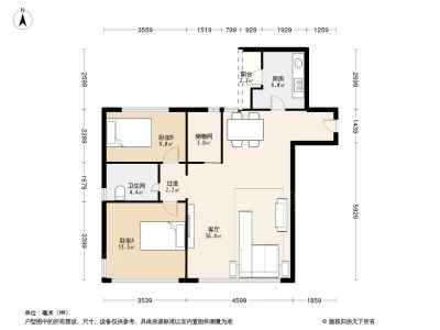 云景豪园 2房2厅1卫 74.58㎡