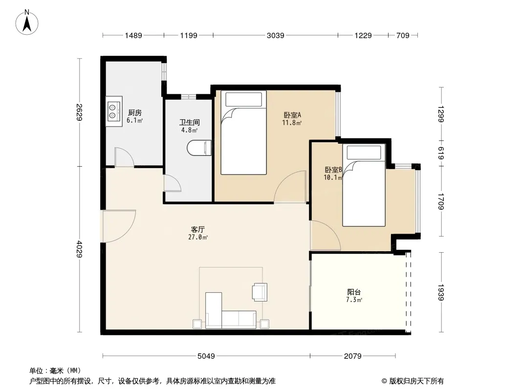 户型齐全,主打户型方正,双阳台二居
